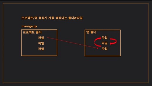 python manage.py startapp <app이름>- APP 이름으로 생성된 폴더 속의 파일들과 몇몇의 project파일들끼리 티키타카가 진행된다