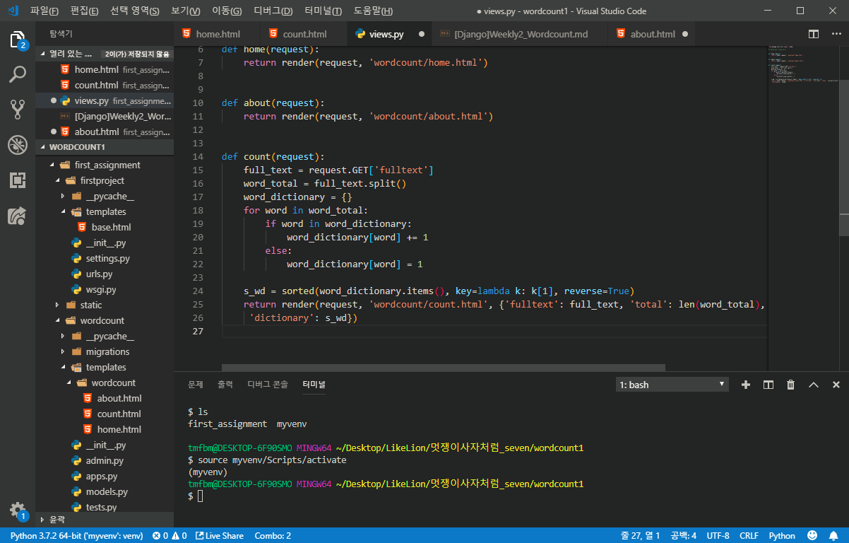 | [Django]Weekely2_Wordcount (0) | 2019.04.16 |