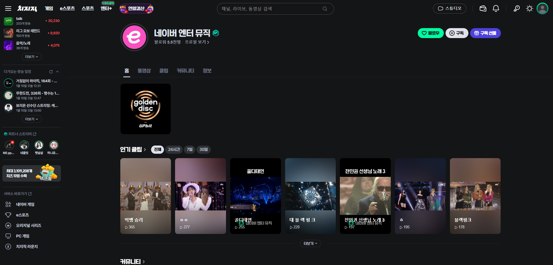 | 국내 팬 | 네이버 치지직 | 무료 생중계 |