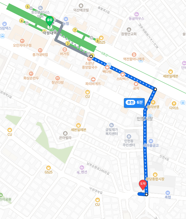 인근 지하철 2호선 낙성대역 1번 출구 (인헌시장 방면)